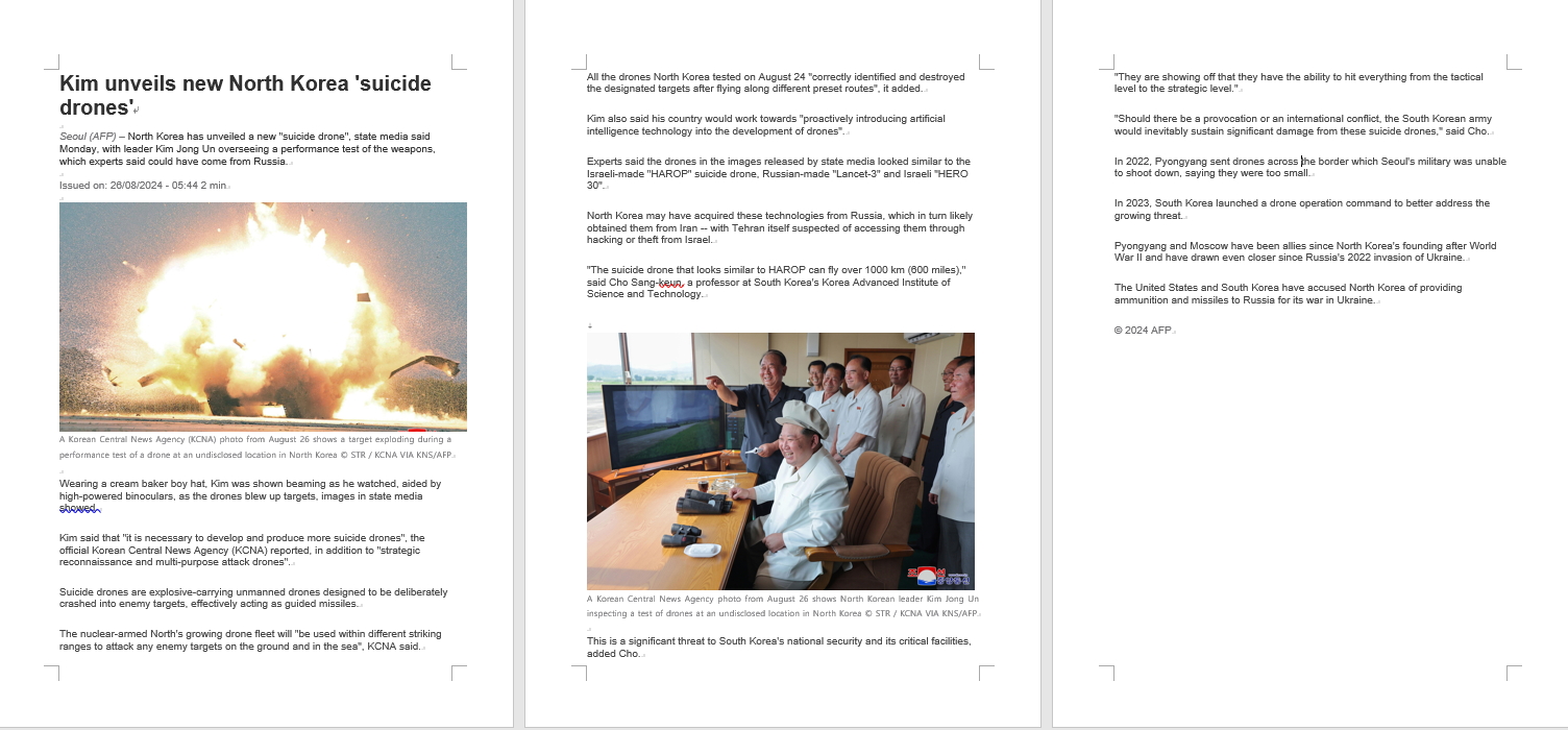 For the full text of the article, please see: “Kim unveils new North Korea ‘suicide drones’.”